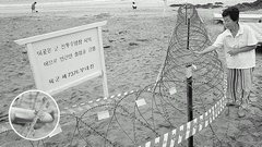 송정해수욕장 군막사 옆에 경계용 철조망이 설치돼 인근 상인들이 크게 반발하고 있다.(사진 왼쪽 아래는 철조망 '날'부분) 강원태기자 wkang@군부대가 여름철이면 유명피서지인 송정해수욕장에 전투수영장으로 군막사를 설치해온 데 대해 주민들의 이전 여론이 일고 있는 가운데 지난 80년대말 철거된 군부대용 철조망이 다시 등장해 파문이 일고 있다.