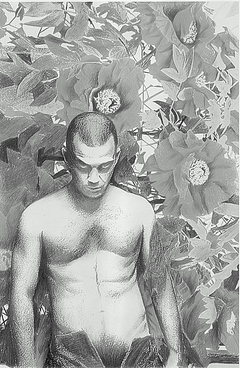 참수된 갑오농민의 머리와 풀잎을 배경으로 민영환을 부각시킨 "근대수난사 연작-민영환"처럼 지난 시절의 그림은 역사의 상처에 주목했다.90년대 중반 이후의 것들은 한 청년이 붉은 목단을 배경으로 바지를 풀어헤친 채 서 있거나(6월 목단꽃) 알몸의 여인이 꽃 낙엽 나무와 중첩되는 형상.시선이 상처난 개인의 내면으로 옮아 있다.