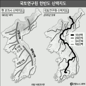 이 산맥지도에 따르면 한반도는 일본이 지난 1903년 제작해 그동안 정부와 학계가 활용해 온 지도(14개 산맥체계)와는 달리 총 48개의 크고 작은 산맥들로 형성돼 있는 것으로 확인됐다.