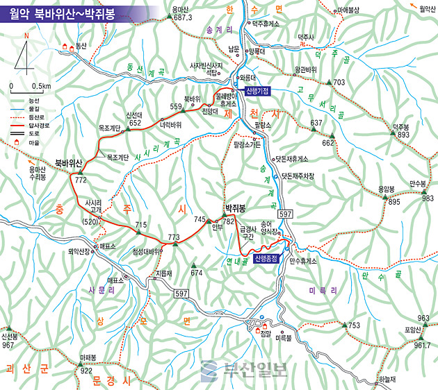 [산&산] 월악 북바위산~박쥐봉 개념도