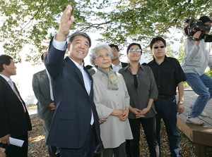 이 여사는 "남편의 묘비에 이 글귀가 새겨져 있으며 남편의 출생지에서 이 글귀를 보니 눈물이 흐른다"고 말한 뒤 "방문을 환영해 준 주민들에게 감사하며 사랑하며 가족들과 자주 오겠다"고 화답했다.
