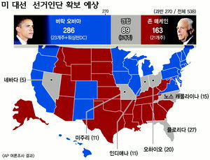 "매케인이 경합 지역 싹쓸이 해도 오바마 승리는 대세…."