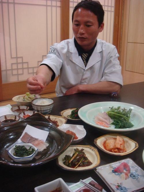 일식에 한국식의 나물과 채소를 곁들이는 방식이 박 사장의 요리 스타일이다. 그는 산초와 나물이 많이 나는 경남 산청 출신이라고 한다. 어릴 때 알게 모르게 먹었던 나물과 야채에 대한 그리운 맛의 기억이 그의 요리에 반영되고 있는 것이다. "음식은 요리하는 주인을 닮는다" "음식을 새롭게 결합시키는 것을 선호한다"는 그의 말 그대로였다.