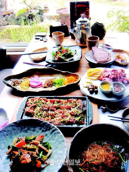 웰빙 코스는 밥으로 마무리된다. 해초비빔밥 산채비빔밥 연밥 중에서 택일을 하여 먹는데 세 가지의 맛이 모두 그저그만이다. 톳, 곰피 등 여섯 가지 해초와 멍게젓갈의 향이 어울린 해초비빔밥 한 숟갈에 기분이 좋다. 머릿속에 파도가 철썩이는 것 같다. 해초의 향이 상큼한 바닷바람을 마시는 느낌을 안긴다.