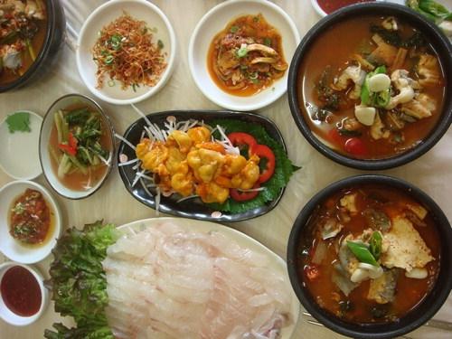 이에 견주어 고랑치매운탕(오른쪽 아래)의 고랑치는 장어보다 부드러웠다. 일견 끓이는 방식이 거의 같은데 탕의 주인이 장어냐 고랑치냐에 따라 장어탕과 고랑치매운탕으로 나뉘는 것처럼 보인다. 또 주위의 직장인들이 단체로 흔히 찾는 것이 생아귀탕이다. "생아귀탕이 시원해 말도 못할 지경"이라고 한다. 갖가지 탕은 모두 8천원이다.