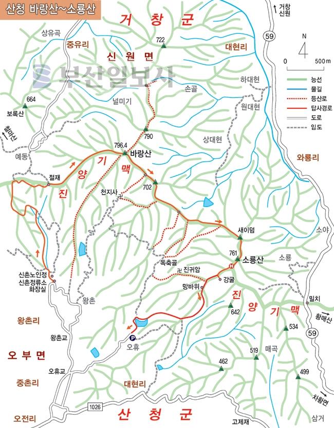 [산&산] <242> 산청 바랑산~소룡산 산행지도