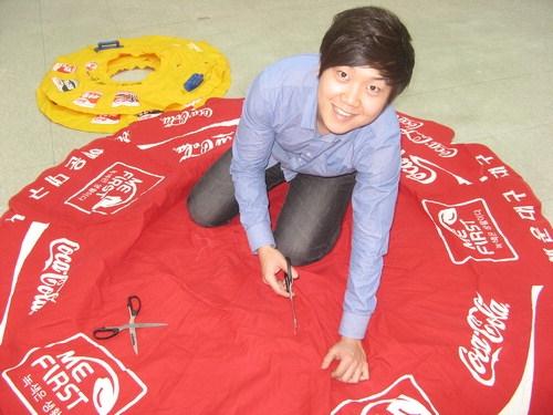 그는 지난해 9월 자신의 이름을 내건 1인 창조기업으로 '영우김디자인'도 설립했다. 이때 부산시로부터 받은 지원금 2천만 원으로 지난해 해운대 바닷가의 파라솔에 대한 대변신 작업에 착수했다. 내달 16일 첫 공개 전시될 파라솔 천 가방과 아이패드 파우치 등이 그 변신의 주인공들이다. 얼핏 단순한 재활용 디자인처럼 보이는데 그는 고개를 저었다. "스토리가 깃든 추억입니다. 지난여름을 기억하는 우리의 생생한 추억이 가방 속에 저장된 겁니다." 그는 디자인에 이야기 꽃을 입힐 때 비로소 명품이 될 자양분을 갖게 된다고 자신했다.