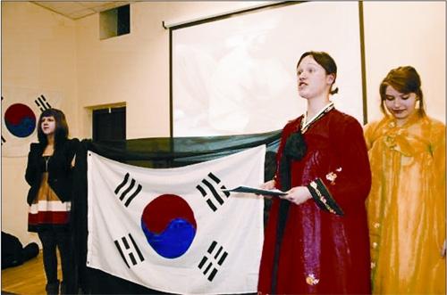 리투아니아 빌뉴스 대학의 '한빌뉴스' 동아리 회원들이 지난 2일 한복을 곱게 차려입고 한국문화를 소개하고 있다.인구 320만 명인 북동유럽 발트해의 리투아니아에도 한류를 한 눈에 느낄 수 있는 행사가 최근 열렸다. 빌뉴스 대학교에서 한국어 강좌를 수강하고 있는 학생들이 '한빌뉴스'(HANVilnius) 동아리를 결성해 한국 문화 배우기와 알리기에 앞장서고 있는 것이다.