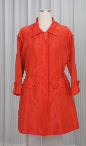 올해 봄여름철에 유행할 것으로 보이는 오렌지색을 주력으로 해 여성스러움을 한껏 살린 트렌치코트(사진)가 가장 먼저 눈에 들어온다.