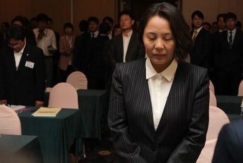 민주통합당 임수경 의원이 4일 오전 서울 양재동 교육문화회관에서 열린 의원워크숍에서 국민의례를 하고 있다. 박희만 기자한때 '통일동지'였던 새누리당 하태경 의원과 민주통합당 임수경 의원이 '변절'이라는 단어를 놓고 막장 설전을 벌였다.