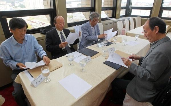 지난 8일 열린 제29회 요산문학상 심사에서 심사위원들이 토론을 벌이고 있다. 김경현 기자 view@심사위원들은 먼저 요산 김정한 선생의 문학 정신을 되새기고, 이 정신을 계승하고 확산하려는 요산문학상의 제정 취지와 의의를 재확인했다. 문화는 곧 돈, 혹은 문학도 돈이 되는 문학이어야 한다는 우려할 만한 인식이 널리 퍼져 있는 가운데 민족사의 어둠을 민중과 함께 견딘 요산의 문학은 우리의 공동 지혜로 기억되어야 할 것이기 때문이다. 요산 문학은 굽도 젓도 할 수 없는 약자의 목소리를 담아내고, 역사를 통해 현재의 우리를 발견토록 하기 때문이다.