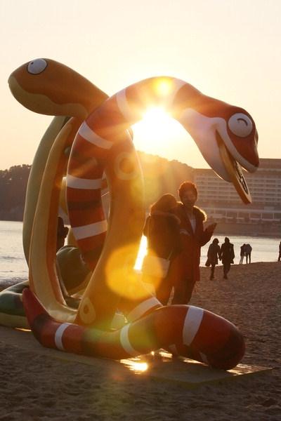 뱀의 해를 맞아 부산 해운대해수욕장에 설치된 4마리의 뱀 조형물. 부산일보 DB뱀의 해가 다가오고 있다. 대부분의 사람들은 뱀을 썩 달가워하지 않지만 의학에서의 뱀은 죽은 자를 살려내는 힘을 가지고 있는 영물이다. 그래서 그리스 신화에 나오는 의학의 신 아스클레피우스와 그의 지팡이를 휘감고 올라가는 뱀의 형상은 지금까지도 의술의 상징이 되고 있다. 2013년 새해를 맞아 영험한 뱀의 기운을 받고 태어난 뱀띠 의사 7명의 신년 건강 덕담을 들어봤다.