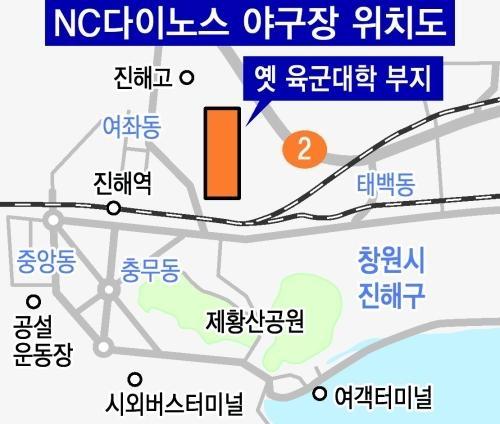 프로야구 제9구단 NC 다이노스의 새 야구장이 경남 창원시 진해구 옛 육군대학 부지로 확정됐다.