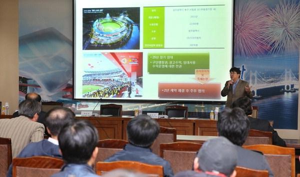 이날 토론회에서는 사직야구장에 대한 위수탁 재계약 기간을 장기화해야 한다는 지적도 나왔다. 현행 3년으로 명시돼 있는 부산시와 롯데의 위수탁 계약 기간을 20년 이상 장기화해야 한다는 것. 김동진 롯데 자이언츠 전략사업팀장은 "사직야구장 위수탁 재계약 기간이 너무 짧다 보니 그룹 차원에서의 장기적인 발전계획을 수립할 수 없다"면서 "20년 이상 장기계약으로 사직야구장에 대한 투자여건을 마련하는 게 중요하다"고 지적했다.