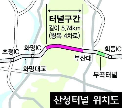 북구 화명동 화명정수장에서 금정구 장전동 장전초등학교를 잇는 산성터널은 동·서부산권을 잇는 핵심도로다. 2005년 민간제안 이후 적정 통행료 산정과 접속도로 개통 등을 둘러싸고 우여곡절을 겪었다.