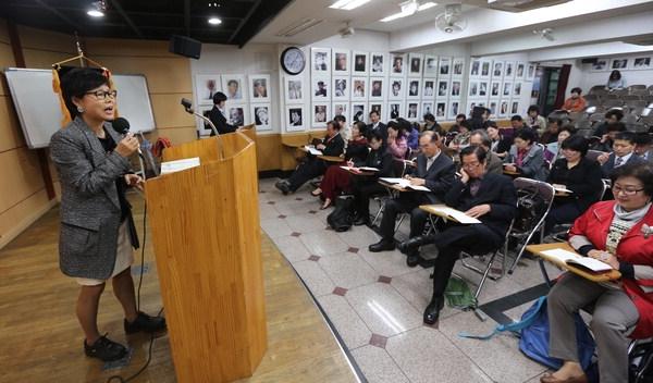 "내 쪼깬 했을 적/따시한 매뚱 저태 대~기 부꺼러븐 듯/모간지 떨간 할매꽃" 할머니의 옛이야기를 듣는 것처럼 정겨운 '할매꽃' 낭송에서는 곰살맞고 간드러지는 성복순 시인의 말투 때문에 여기저기서 '히~' 하는 웃음이 새어 나왔다. 시인은 "고맙습니더"라며 내려가는 순간까지 정겨움을 놓지 않아 청중들로부터 큰 박수를 받았다.