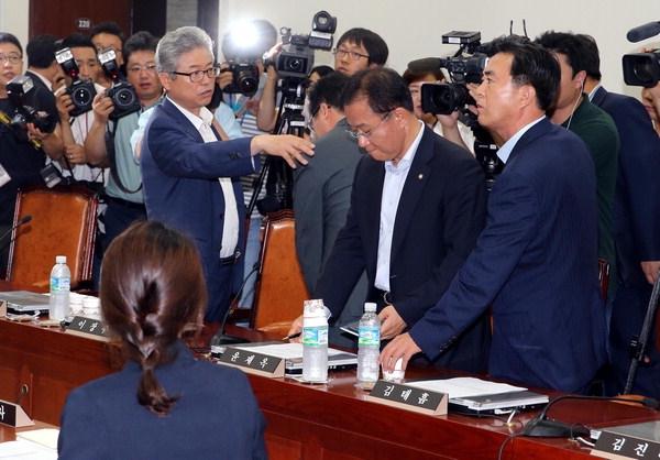 2일 오전 열린 '국정원 댓글 의혹사건 등의진상규명을 위한 국정조사특별위원회' 첫 전체회의에서 새누리당 위원들이 민주당 일부 의원의 위원자격을 문제삼아 회의를 거부, 회의장을 떠나고 있다. 박희만 기자
