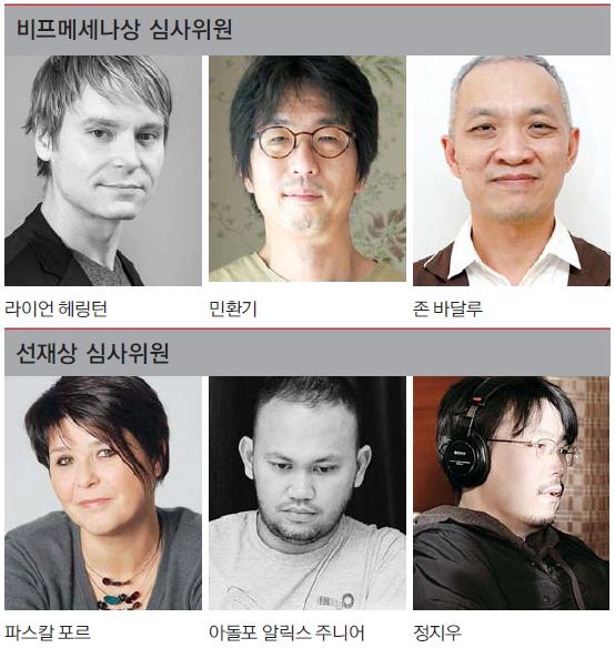 선재상 심사위원으로는 프랑스 대표 유료채널인 '카날 플러스' 단편 영화담당 프로듀서로 문화 다양성을 지향하는 창의적 프로그램을 제작하고 있는 파스칼 포르, 영화 감독은 물론 작가, 프로듀서 등으로 다양하게 활동하고 있는 필리핀 대표 감독 아돌포 알릭스 주니어, '해피엔드'(1999) '사랑니'(2005) '은교'(2012) 등 꾸준히 좋은 작품을 내놓고 있는 정지우 감독이 선정됐다.