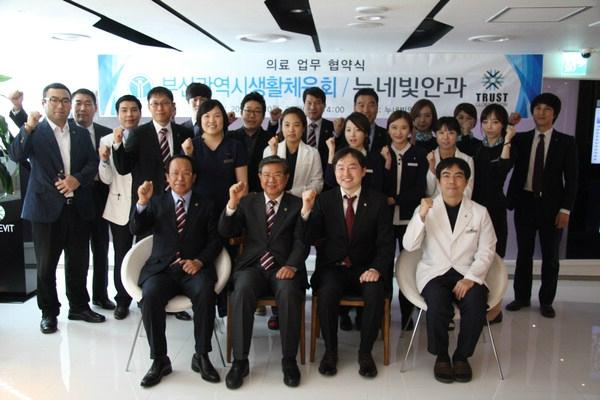 부산시생활체육회(회장 박희채)는 지난달 30일 부산 롯데호텔 14층 누네빛안과(대표원장 박효순)에서 체육회와 누네빛안과의 상호발전을 위한 '의료 업무 협약식'을 가졌다.