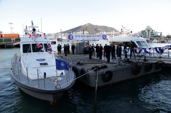 9일 오후 부산 중구 중앙동 부산경남본부세관 별관 앞 광장에서는 새로 건조한 감시정인 '상정호'와 '붕양호'에 대한 취항식이 열렸다. 두 감시정은 앞으로 부산과 경남지역 주요 항구와 인근 해상에서 해상밀수 단속 등에 나선다. 부산경남본부세관 제공세관의 최첨단 감시정 두 척이 취항식을 갖고 부산과 경남 앞바다에서 본격적인 해상밀수 단속에 나선다.