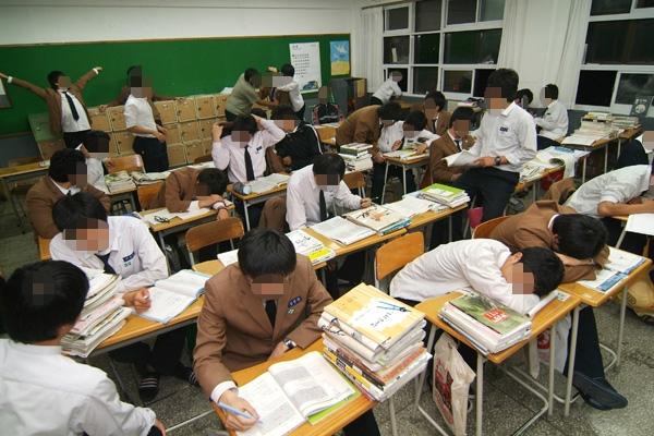 열여덟 살 미국 청소년 에릭은 3분의 1의 학생이 수업 시간에 잠들어 있는 것을 보고 경악을 금치 못한다. 그는 이렇게 수업시간에 맨날 자면서 어떻게 공부를 잘할 수 있을까 궁금해 한다. 사진은 부산의 한 고등학교 교실 모습. 부산일보 DB장면 1. 학급의 3분의 1은 잠을 잤다. 수업이 끝나자 아이들은 잠에서 깨어났다. 10분밖에 되지 않는 쉬는 시간은 일분일초가 아까웠다. 여학생들은 책상 위에 앉거나 뒤집어 놓은 쓰레기통 위에 앉아 수다를 떨거나 전화로 문자를 주고받았다. 남학생 몇몇은 연필로 책상을 드럼처럼 때리며 놀았다. 수업 시간에 저렇게 맨날 자면서 한국 아이들은 어떻게 그런 기록적인 성적을 낼 수 있었을까?