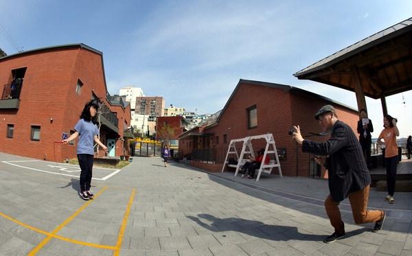 수국마을 가운데에 있는 마당은 아이들의 놀이터이자 쉼터이다. 줄넘기를 하고 있는 한 아이의 모습을 강기표 건축가가 카메라로 찍고 있다.영국의 윈스턴 처칠은 "사람은 건축을 만들고, 건축은 사람을 만든다"고 했다. 건축과 우리 삶의 관계를 이보다 더 적절하게 표현한 말은 없을 것이다. 비록 오래 걸리고 더디지만, 건축은 분명 우리를 바꾼다.
