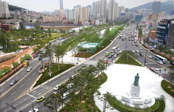 송상현 광장은 200여m 떨어진 부산시민공원과 연계해 새로운 녹지축을 형성하고 도심 속 보행 환경에 대한 새로운 모델을 제시할 것으로 기대된다.