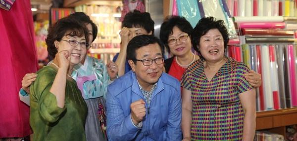 1일 오전 부산진시장을 방문한 서병수 부산시장이 시장상인들의 기념촬영 요청에 함께 파이팅을 외치며 기념촬영을 하고 있다. 이재찬 기자 chan@민선 6기의 막이 올랐다. 서병수 부산시장은 취임사를 통해 새로운 부산 시대의 방향을 제시했다. 서 시장의 취임사에 나타난 새로운 부산 시대의 핵심 키워드는 시민과 현장, 좋은 일자리, 낙동강 시대 등으로 요약된다.