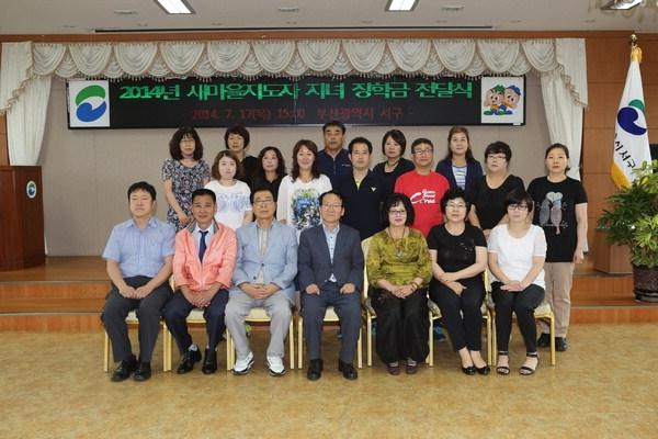 부산 서구(구청장 박극제)는 지난 18일 구청 대회의실에서 새마을지도자 자녀 16명(고등학생 12명, 대학생 4명)에게 장학금 2천900여만 원을 지원하는 전달식을 개최했다.