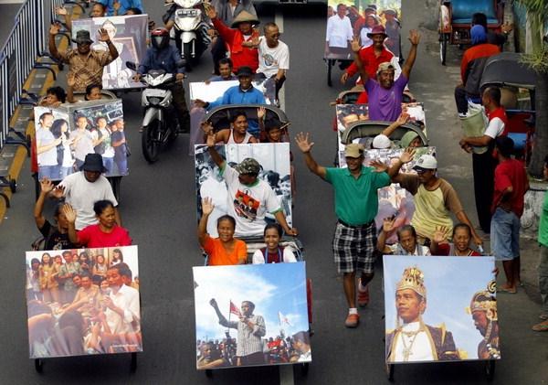 조코 위도도 인도네시아 대통령 당선인 지지자들이 지난 23일 삼륜 오토바이에 조코 위도도의 사진을 싣고 자카르타 시내로 쏟아져 나와 대선 승리를 자축하고 있다. EPA연합뉴스'목수의 아들' 조코 위도도(일명 조코위·53)가 최근 인도네시아 대통령에 당선됐다. 인도네시아에서 대통령 직선제가 시행된 2004년 이후 처음으로 평화적인 정권 교체도 이뤄냈다.