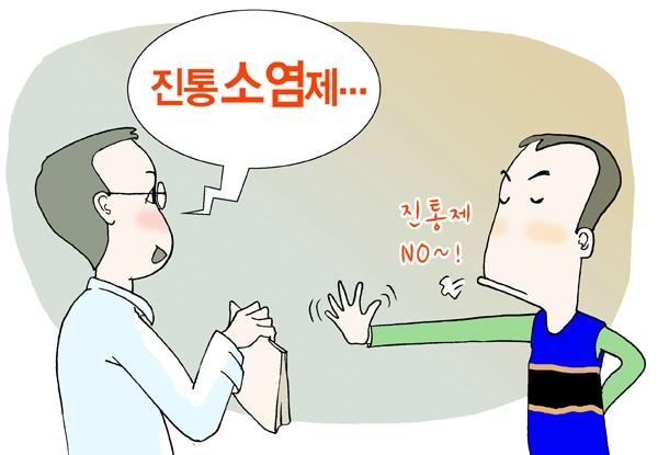 막무가내로 진통소염제에 대한 거부감을 나타내는 것이다. 진통소염제를 환자들은 병의 치료 여부와 관계없이 단순히 통증만 없애는 진통제로 오해하고 복용을 꺼려하는 경우가 있다. 하지만 이 경우 오히려 치료기간을 늘릴 수 있다.