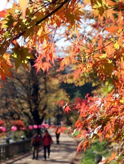단풍 전선이 다급하게 남하하더니 강원도 평창 오대산의 월정사 전나무 숲길에 색색 단풍을 내렸다. 가을이 하루 다르게 주홍빛 세상으로 익어간다. 김병집 기자 bjk@'병든 아우야 내년의 단풍 보고 죽어라.' 고은 시인의 시 '내장산' 전문입니다. 짧지만 강렬합니다. 이 문장에 이끌려 몸을 서둡니다. 단풍전선이 다급하게 남하해서지요. 오대산 타더니 이내 치악산에 머뭅니다. 이번 주말엔 지리산에 닿을 겁니다. 봄은 기를 쓰고 올라가고 가을은 이렇게 신속하게 내려온다는 딱 그 짝입니다. 조갈증 겹다 단풍 쫓아 북상을 했습니다.