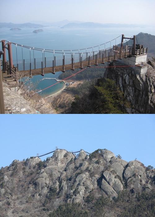 의붓아비와의 '천륜'을 지키기 위해 열여섯 꽃다운 나이에 요절한 옥녀의 전설이 서린 경남 통영시 사량도 옥녀봉. 지금은 구름다리가 놓였다. 김민진 기자"옛날 사량도 옥녀봉 아래 작은 마을에 가난한 부부가 살고 있었다. 어느날 옥녀라는 예쁜 여자아이가 태어났지만 가난 때문에 제대로 먹지 못한 어머니가 옥녀를 낳은 뒤 병으로 세상을 등지자 아버지마저 슬픔에 잠겨 몸져눕고. 얼마 후 아버지도 세상을 하직한다.