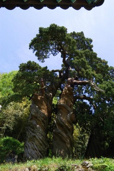 향나무 두 그루가 맞자란 수령 800년의 '쌍향수'. 전남 순천 송광사에 있다. 부산일보DB향나무는 향 때문에 붙여진 이름이다.