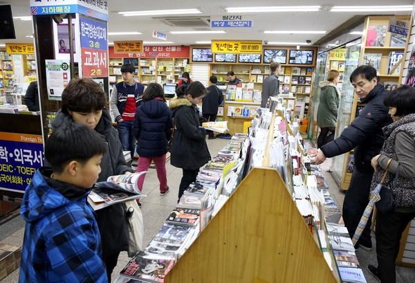 2015년 부산 대표 도서 한 권을 선정하는 '원북원부산운동'이 24일부터 '올해의 책'을 고르는 투표를 진행한다. 사진은 22일 오후 서면 영광도서에서 책을 보고 있는 시민들. 강원태 기자 wkang@'2015년 부산 대표 도서 한 권을 골라 주세요.'