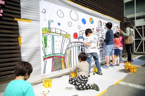 토요 프로그램 중 하나는 '공장에 색을 입히다'이다. 전시실 앞 부스 벽면 현수막에 그려진 공장 아웃라인을 따라 아이들이 아크릴 물감으로 자신만의 색채를 입히는 체험이다. 이를 기획한 이욱상 부산영상예술고 교사는 "공장은 으레 칙칙하고 회색의 이미지를 지니고 있다고 생각하지만 아이들은 그렇지 않다"며 "아이들이 생산현장을 마음의 색깔로 상상해서 칠해보라고 하면 아주 다른 느낌이 나오지 않을까"고 했다. 이 아이들이 자라면 공장은 기존 이미지를 넘어 밝고 화사한 이미지로 탈바꿈할 것이다. 토요 프로그램의 또다른 주제는 '조립 작품을 활용한 이동 벽화 꾸미기'. 공장 생산품이나 폐자재 등을 오브제로 써서 벽화를 직접 만든다. 참여 신청은 사전 예약해야 한다.