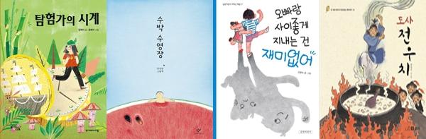 수박 수영장=숨이 턱턱 막힐 만큼 무더운 여름. 커다란 수박 안에 들어가 수영을 하면 어떨까. 수박 수영장에서 상상의 나래를 한껏 펼칠 수 있는 그림책. 안녕달 글·그림/창비/60쪽/1만 2천 원.