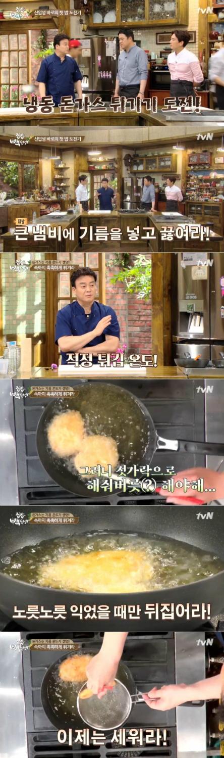 백종원이 냉동 돈가스를 튀길 때의 주의사항에 대해 알려줬다.