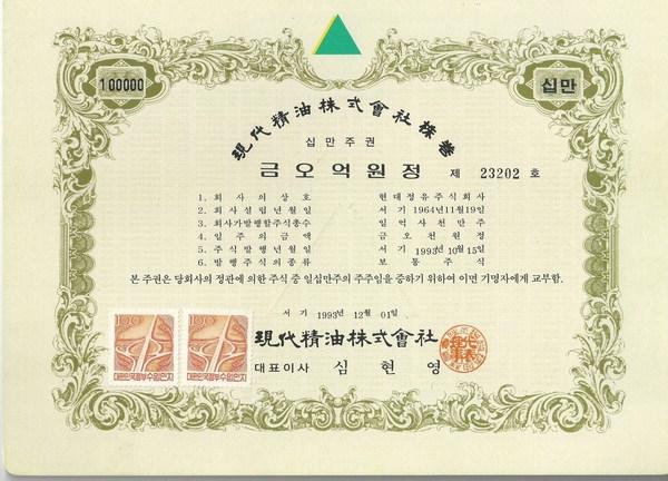 고(故) 정주영 현대그룹 명예회장의 지인으로부터 받은 것이라며 위조된 현대정유㈜(현 현대오일뱅크) 주권 수백억 원어치를 유통하려던 일당이 경찰에 덜미를 잡혔다.