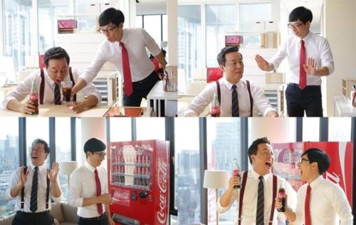 '무한콤비' 유재석·정준하, '코카콜라 맛있다' CF 현장 공개