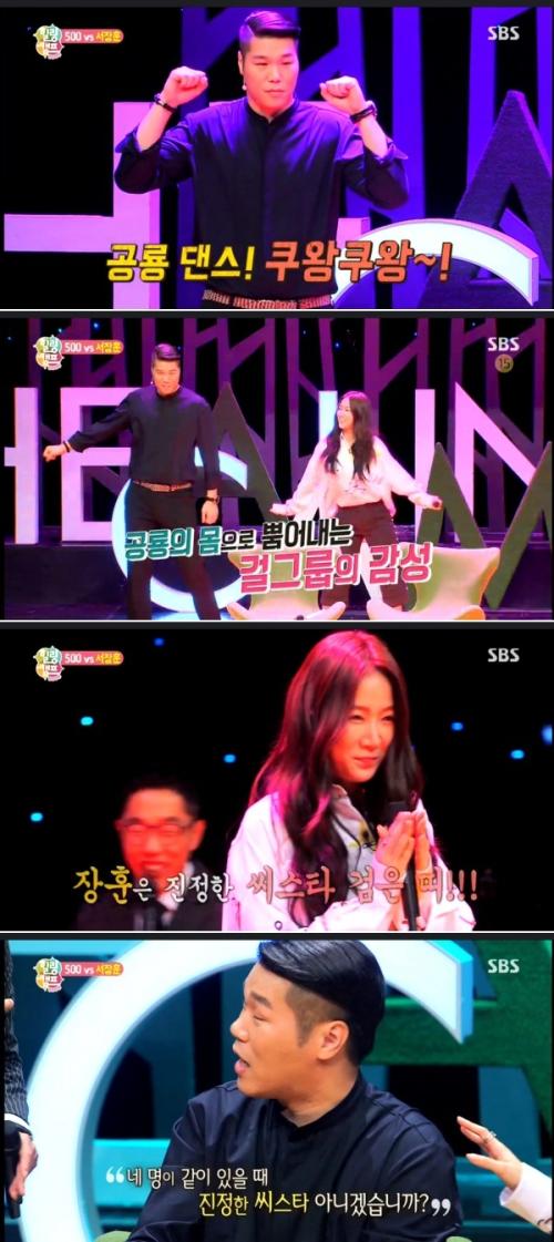 이날 서장훈은 "씨스타의 춤은 정말 많이 봤다"면서 게스트로 출연한 소유와 함께 씨스타의 노래에 맞춰 앙증맞은 춤을 보여 주었다.