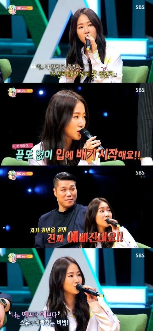 이에 소유는 "어렸을 때 제가 제일 예쁜줄 알았다. 이쪽 일을 하면서 연습생을 하면서 생각보다 예쁜 애들이 많다는 것을 알게 됐다"며 "게다가 데뷔 후 역변을 했다. 데뷔하고 못생겨졌다"고 털어놨다.