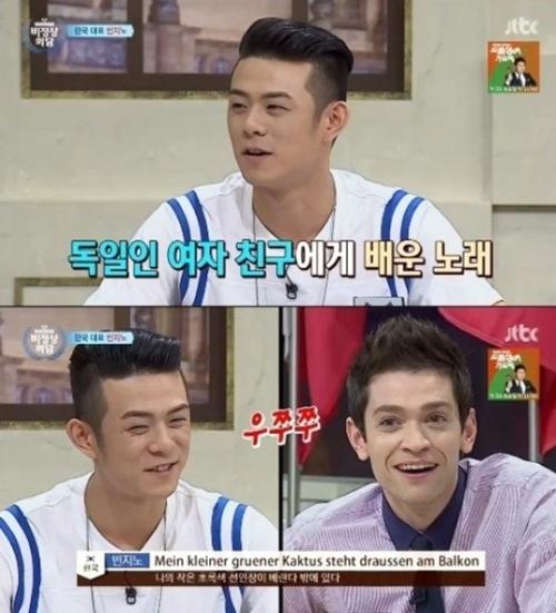 빈지노는 "영어로 주로 대화 한다"며 "저도 독일어를 물어보고 그 친구도 한국어를 배우고 있다"고 답해 눈길을 끌었다.