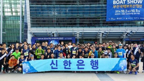 신한은행은 2013년부터 지역본부 차원에서 매년 100명 이상의 직원과 가족이 부산바다하프마라톤대회에 참가하고 있다. 신한은행부산마라톤동호회 제공신한은행부산마라톤동호회는 2004년 직원만족센터 스포츠클럽으로 정식 발족됐다.