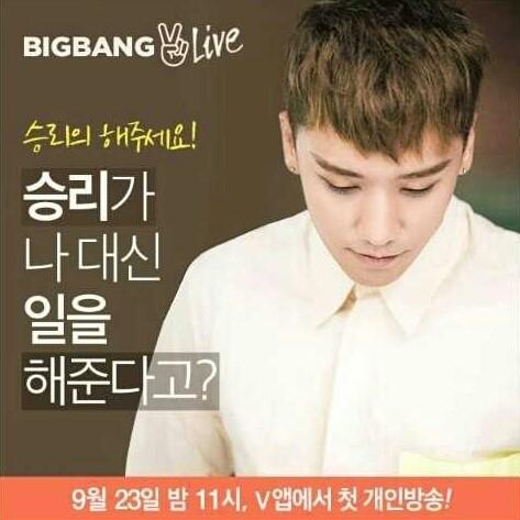 승리는 23일 네이버 V앱을 통해 '승리의 해주세요:승리세요!'로 팬들을 찾는다.