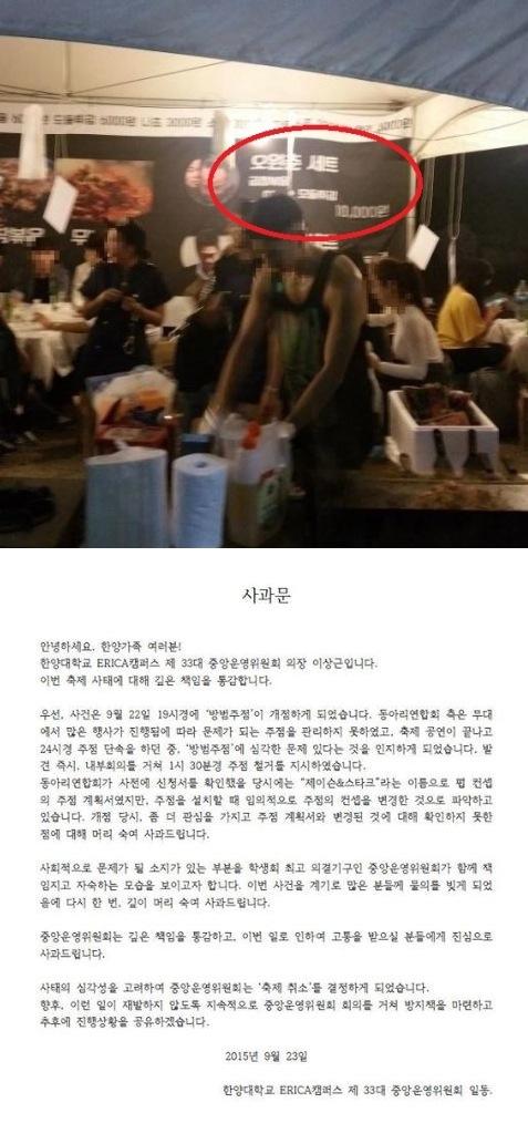 결국 한양대 에리카 총학생회의 공식 사과문, 축제 취소 결정과 함께 학교 측 징계논의로 마무리되는 모습이다.