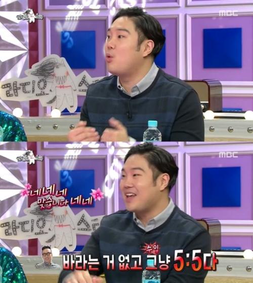 이날 유재환은 "'라디오스타'에 나간다고 하니 박명수가 조언해줬다"며 "바라는 거 없고 그냥 (수입은) 5대5라고 말했다"고 밝혔다.