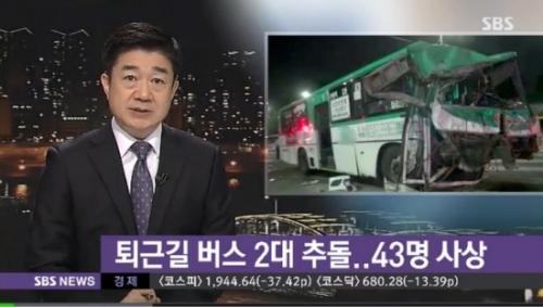 [비에스투데이 류세나 기자] 퇴근길 시내버스 2대가 추돌해 승객 2명이 사망하고 41명이 부상을 당하는 사고가 발생했다.