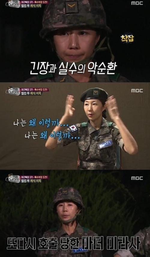 [비에스투데이 류세나 기자] '여군특집3' 전미라가 마녀 소대장의 계속된 지적에 의기소심해진 모습을 보였다.