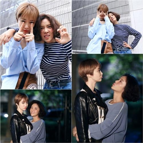 28일 '그녀는 예뻤다' 제작진이 공개한 사진 속에는 '진리커플'의 깜찍한 모습이 담겼다. '진리커플'은 김혜진(황정음)과 민하리(고준희)의 이름을 따서 만든 것.